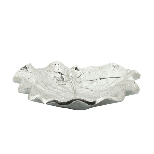 Sold outMetal, 13" Round Leaf Tray, Silver