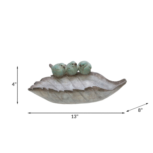 Polyresin 13" Bird Trio Leaf Decor, Gray/blue