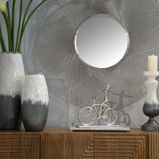 Metal, S/3 14/16/18" Round Mirrored Trays, Black