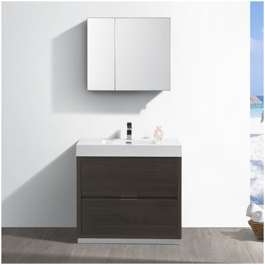 Valencia 36" Gray Oak Free Standing Modern Bathroom Vanity w/ Medicine Cabinet