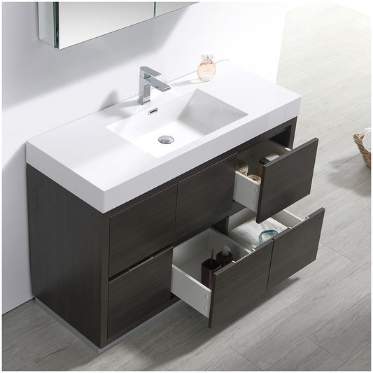 Valencia 48" Gray Oak Free Standing Modern Bathroom Vanity w/ Medicine Cabinet