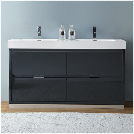 Valencia 60" Dark Slate Gray Free Standing Double Sink Modern Bathroom Vanity