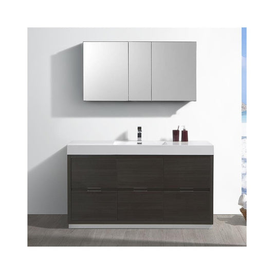 Valencia 60" Gray Oak Free Standing Modern Bathroom Vanity w/ Medicine Cabinet