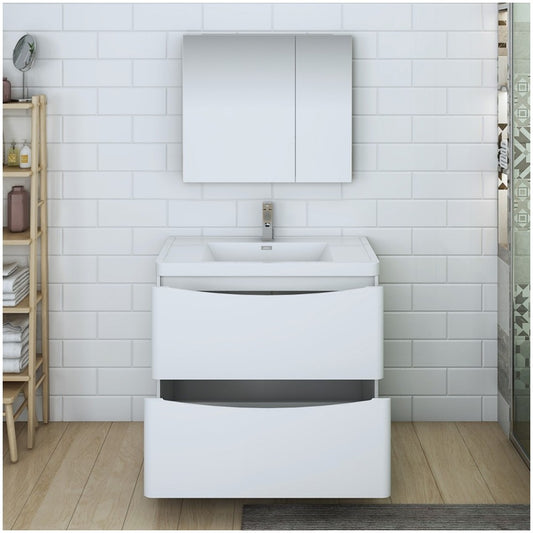 Tuscany 36 Glossy White Free Standing Modern Bathroom Vanity w/ Medicine Cabinet