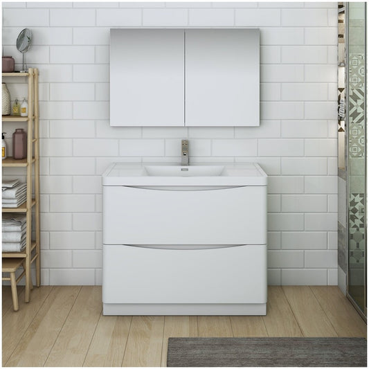 Tuscany 40 Glossy White Free Standing Modern Bathroom Vanity w/ Medicine Cabinet