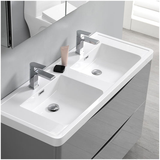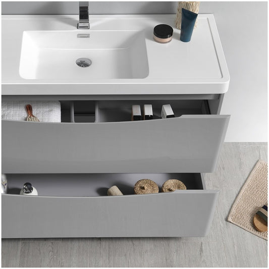 Tuscany 48" Glossy Gray Free Standing Modern Bathroom Cabinet w/ Integrated Sink