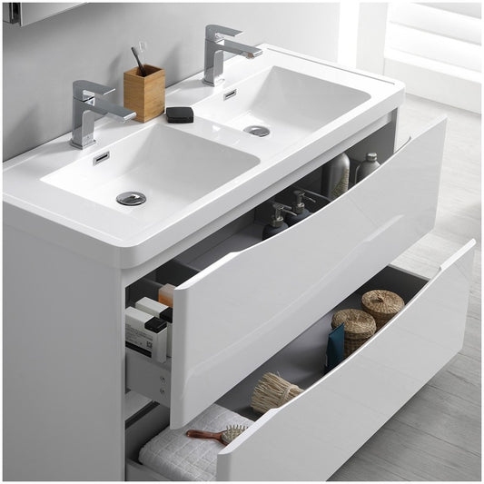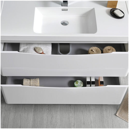 Tuscany 48 Glossy White Free Standing Modern Bathroom Cabinet w/ Integrated Sink