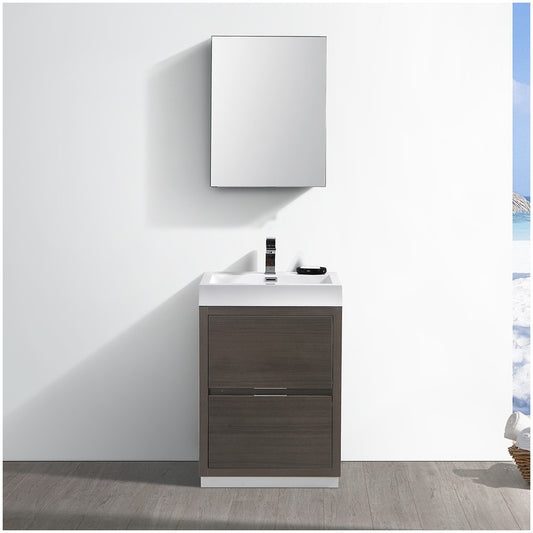 Valencia 24" Gray Oak Free Standing Modern Bathroom Vanity w/ Medicine Cabinet