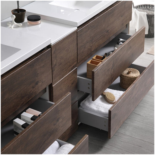 84 Rosewood Free Standing Double Sink Modern Bathroom Vanity w/ Medicine Cabinet
