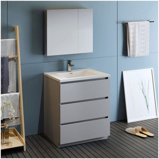 Fresca Lazzaro 30" Gray Free Standing Modern Bathroom Vanity w/ Medicine Cabinet