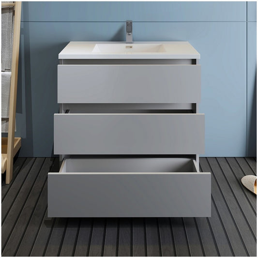 Fresca Lazzaro 30" Gray Free Standing Modern Bathroom Cabinet w/ Integrated Sink