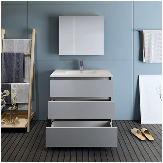 Fresca Lazzaro 36" Gray Free Standing Modern Bathroom Vanity w/ Medicine Cabinet