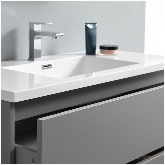 Fresca Lazzaro 36" Gray Free Standing Modern Bathroom Cabinet w/ Integrated Sink