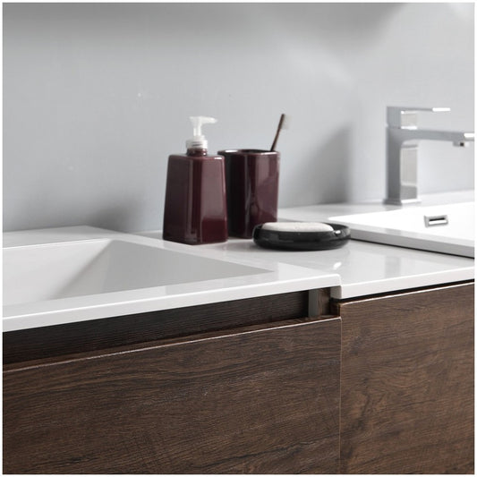 60 Rosewood Free Standing Modern Bathroom Cabinet w/ Integrated Double Sink