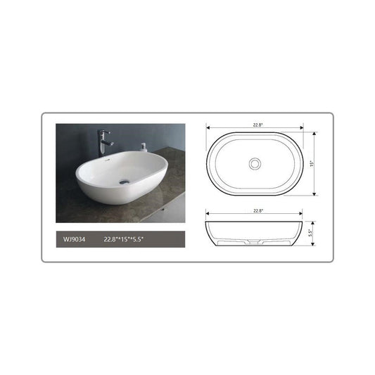 22.8" White Matt Solid Surface Bowl - No Faucet