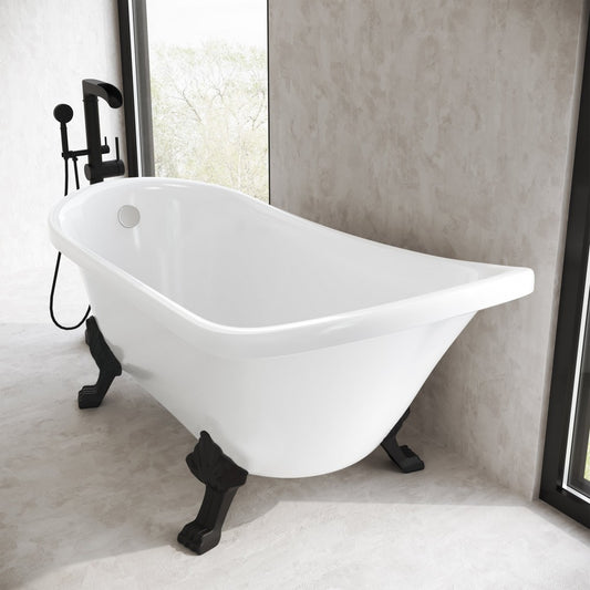 Cache Single Slipper, Clawfoot Soaking Acrylic Bathtub, Matte Black Clawfoot