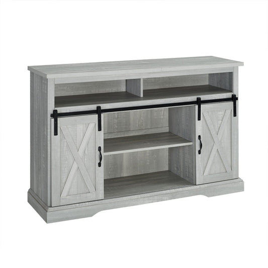 52" Sliding Barn Door Highboy Modern Farmhouse TV Stand - Stone Gray