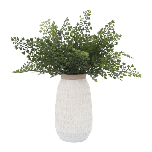 Sold outCer, 10"h Carved Vase, Beige