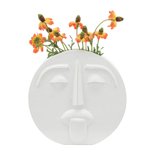 Sold outCer, 10" Sad Face Vase, White