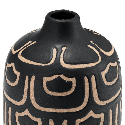 Sold outCer, 10" Decorative Vase, Black/tan