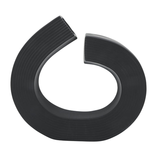 Cer, 13" Beaded Oval Vase Cut-out, Black