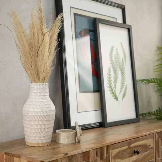 Sold outCeramic 12" Tribal Look Vase, Ivory