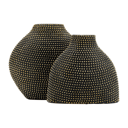 Sold outCeramic 14" Beaded Vase, Black/gold