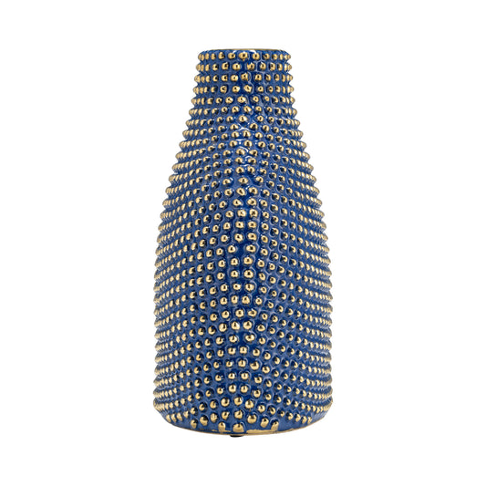 Sold outCeramic 14" Beaded Vase, Navy/gold