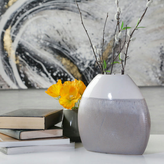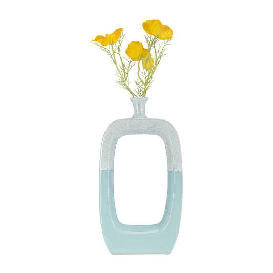 Sold outCeramic 18" Vase W/cutout White/aqua