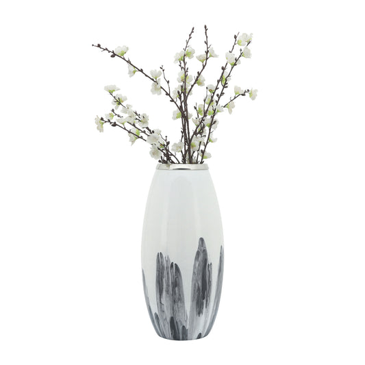 Glass, 19"h Vase W/ Metal Base, Pearl White