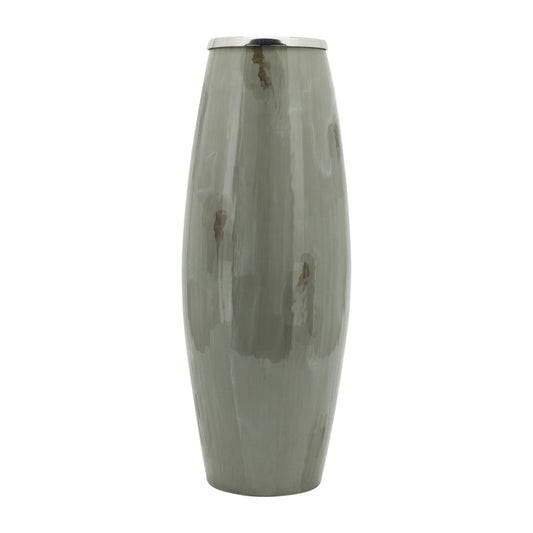 Glass, 24"h Vase W/ Metal Ring, Taupe