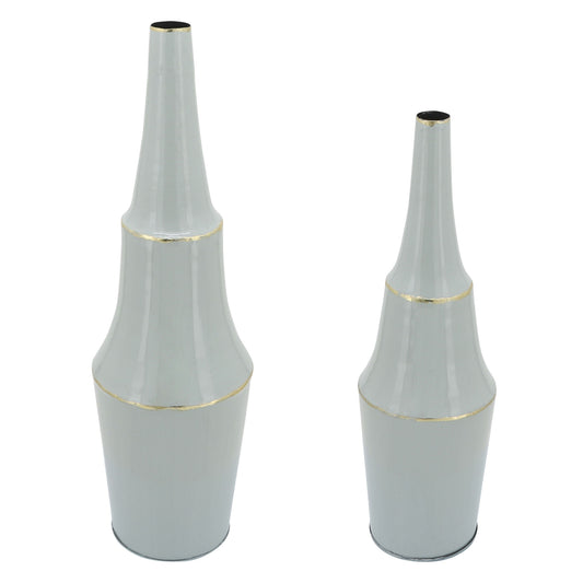 Sold outMetal, 33"h Vase W/ Gold Trims, Gray