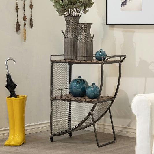 Metal,15"h, Ridged Tall Oval Open Cut Out Vase, Bl