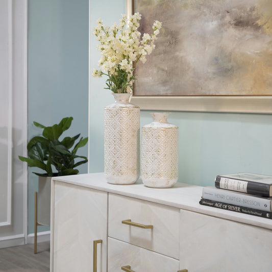 Metal,16"h,tall Modern Open Cut Out Vase,gold