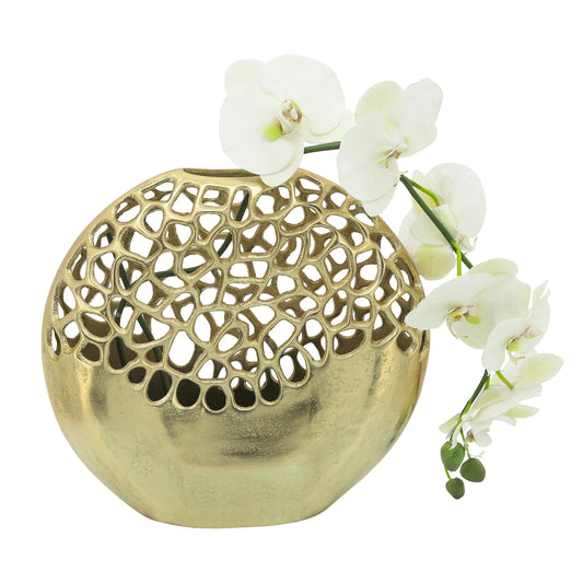Sold outMetal 13"h Oval Cut-out Vase, Gold