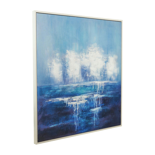 48x48 Handpainted Abstract Canvas, Blue/white