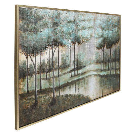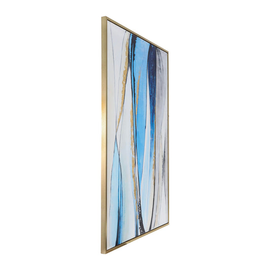 62x42 Framed Hand Painted Abstract Canvas, Blue