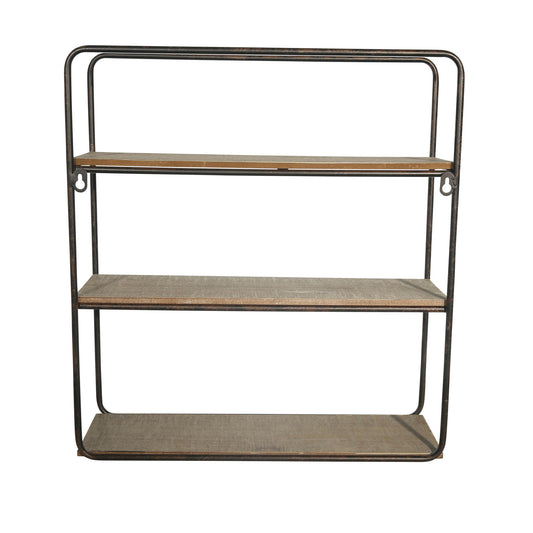 Metal / Wood 3 Tier Wall Shelf, Brown
