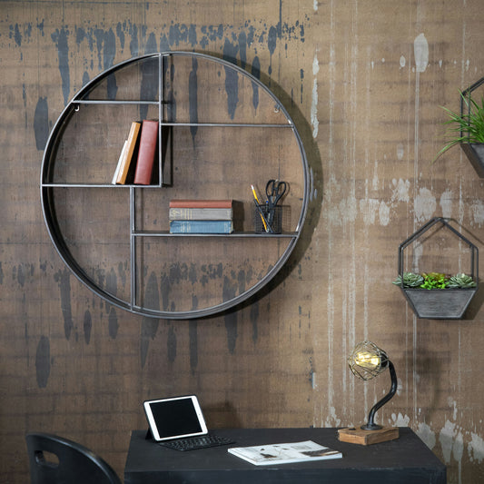 Circle Shelf 17"L x 17.5"H Iron/Wood