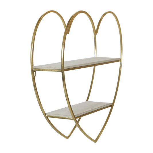 Metal/wood 2 Tier Heart Wall Shelf, White/gold