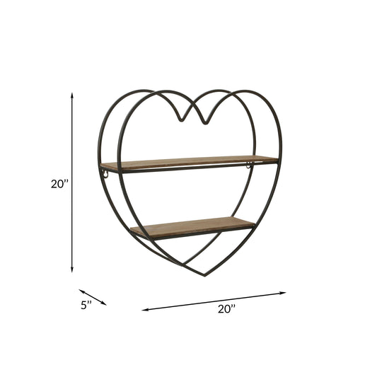 Metal/wood 2 Tier Heart Wall Shelf, Natural/black