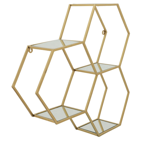 Metal, 28" Mirrored Honeycomb Wall Shelf, Gold