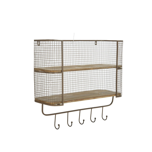 Metal/ Wood, 20" 5 Hook Wall Shelf/ Brown