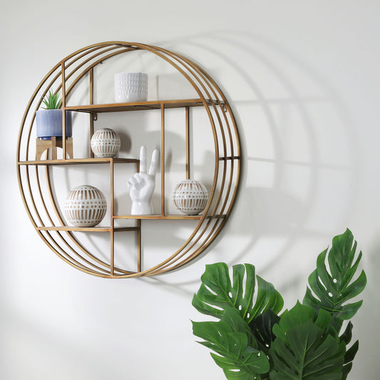 Round 31.5" Wood / Metal Wallshelf, Bronze