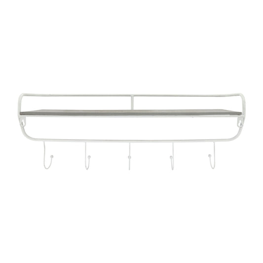 Metal/wood, 24" 5 Hook Wall Shelf, White/gray
