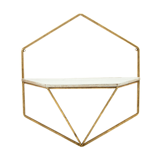 Metal/wood, 13"h Nabla Wall Shelf, White/gold