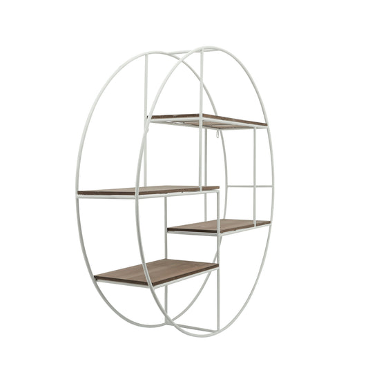 Metal/wood, 32" 4-layered Round Shelf, Brown/white