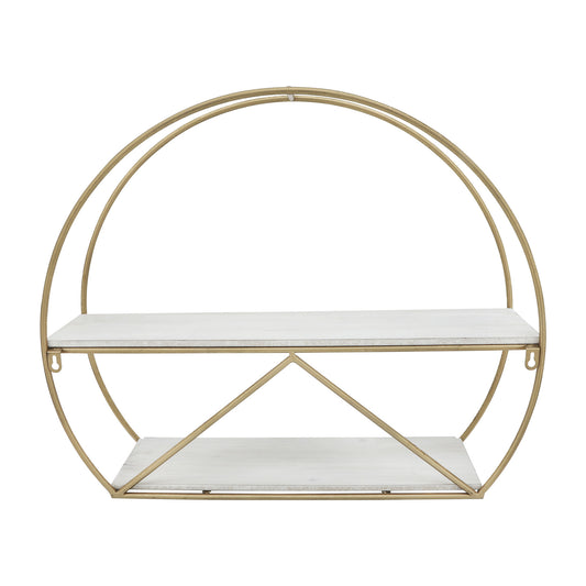 Metal/wood, 19"h 2-layered Wall Shelf, White/gold