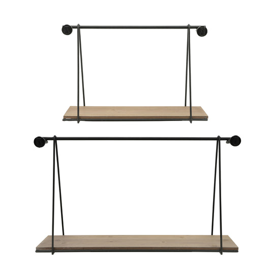 Metal/wood, S/2 12/14"h Swing Like Wall Shelves