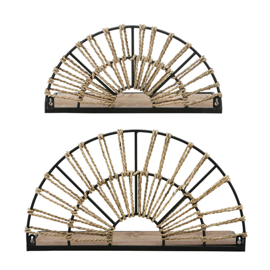 Metal/wood, S/2 11/8" Arch Wall Shelves, Black/bro